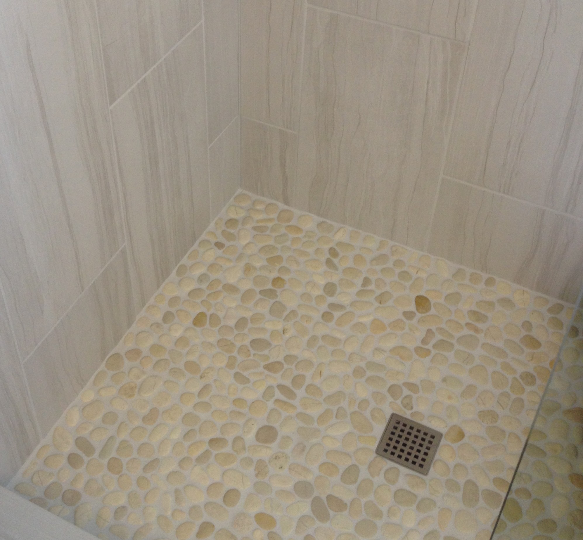There once was a time when the floor tile of a shower was either a 1×1 or 2×2 tile that matched the shower walls. There wasn’t a lot of creativity going on in the lower levels of a shower remodel. Options have increased and our client’s desire for contrasting tiles and stones have given way to a seemingly endless combination of colors and textures.