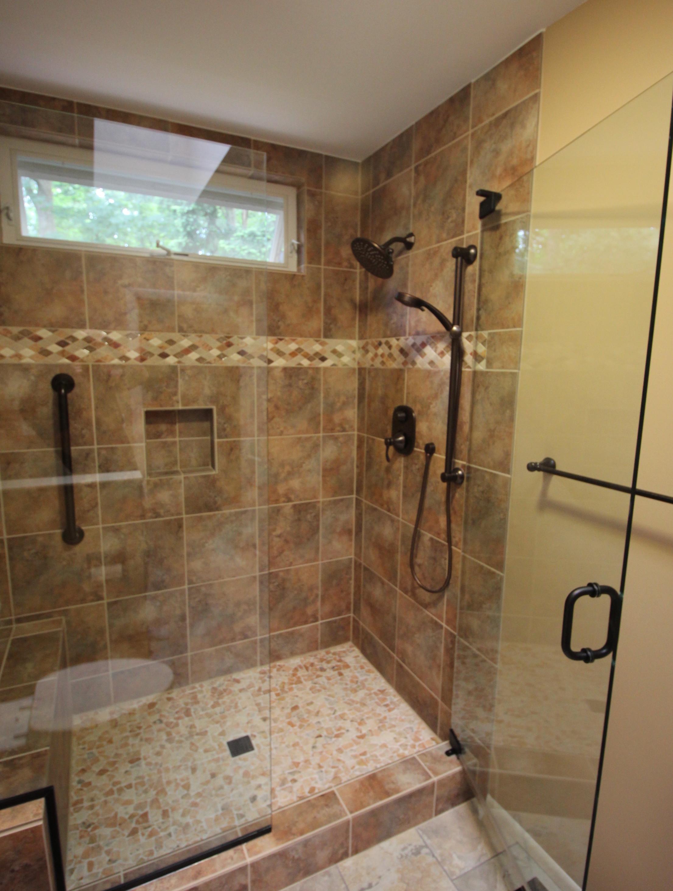 It seems like many of the shower remodels we are doing these days include some sort of built-in seating. It is not surprising to us as this is one Universal Design concept that makes sense from a convenience and safety standpoint. Coupled with grab bars, the shower seat creates a relaxed option for soaking, cleaning, and shaving.